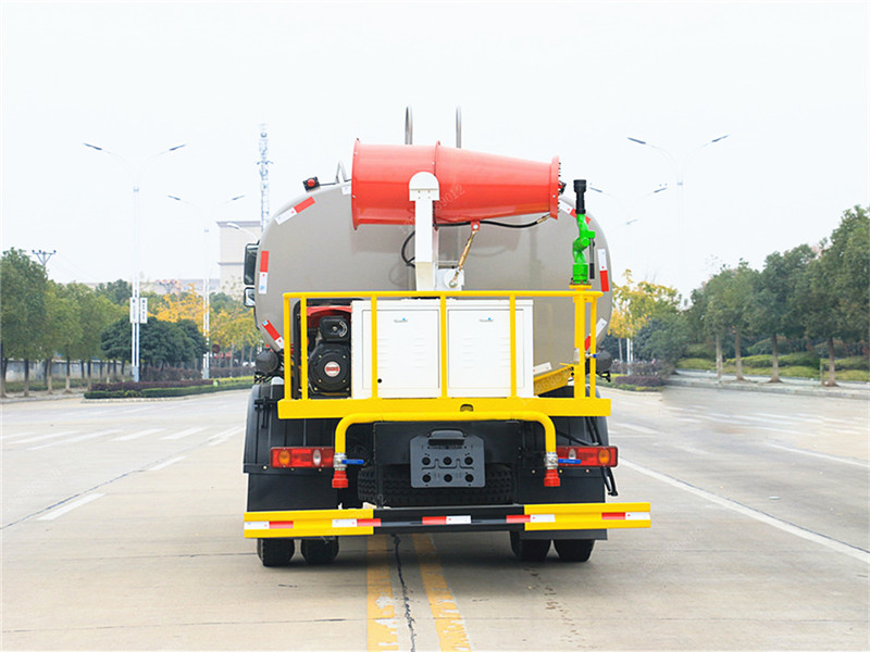 | 上裝配置:罐體采用國標Q235碳鋼板制作,可選用30米、40米、50米中型霧炮,罐體采用機器壓板一次性成型技術(shù),采用先進旋邊機,罐體包罐機工藝保證了罐體制作的精度和美觀。罐體厚度4mm,前后封頭5MM加厚型,罐體實際容積約12立方(12噸),程力獨有烤漆工藝,多層底漆、防腐除銹,面漆噴涂。 功能齊全,配備前沖、后灑、側(cè)噴、綠化灑水炮,采用優(yōu)質(zhì)水泵,合理設計水路管道,氣控取力器,作業(yè)能力強;采用柴油發(fā)電機大功率霧炮機,噴灑距離選裝30-50米射程,運用范圍廣泛。 |