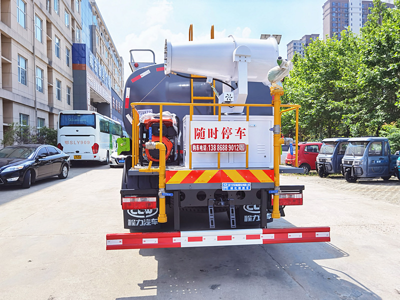 上裝配置:罐體采用國標(biāo)Q235碳鋼板制作,可選用30米、40米中型霧炮,罐體采用機(jī)器壓板一次性成型技術(shù),采用先進(jìn)旋邊機(jī),罐體包罐機(jī)工藝保證了罐體制作的精度和美觀。罐體厚度4mm,前后封頭5MM加厚型,罐體實(shí)際容積12立方(12噸),程力獨(dú)有烤漆工藝,多層底漆、防腐除銹,面漆噴涂。 功能齊全,配備前沖、后灑、側(cè)噴、綠化灑水炮,采用優(yōu)質(zhì)水泵,合理設(shè)計(jì)水路管道,氣控取力器,作業(yè)能力強(qiáng);采用柴油發(fā)電機(jī)大功率霧炮機(jī),噴灑距離選裝30-40米射程,運(yùn)用范圍廣泛。